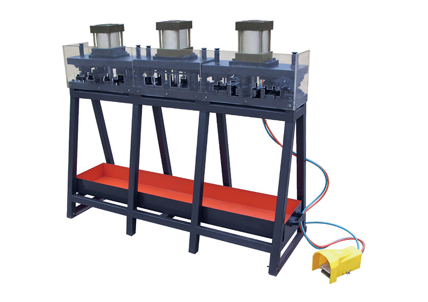 It is pneumatic control and can punch different profiles through changing the dies.